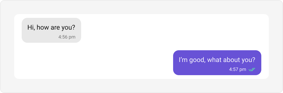 Text bubbles display plain text messages. These are the most common bubble type in a chat interface. Default