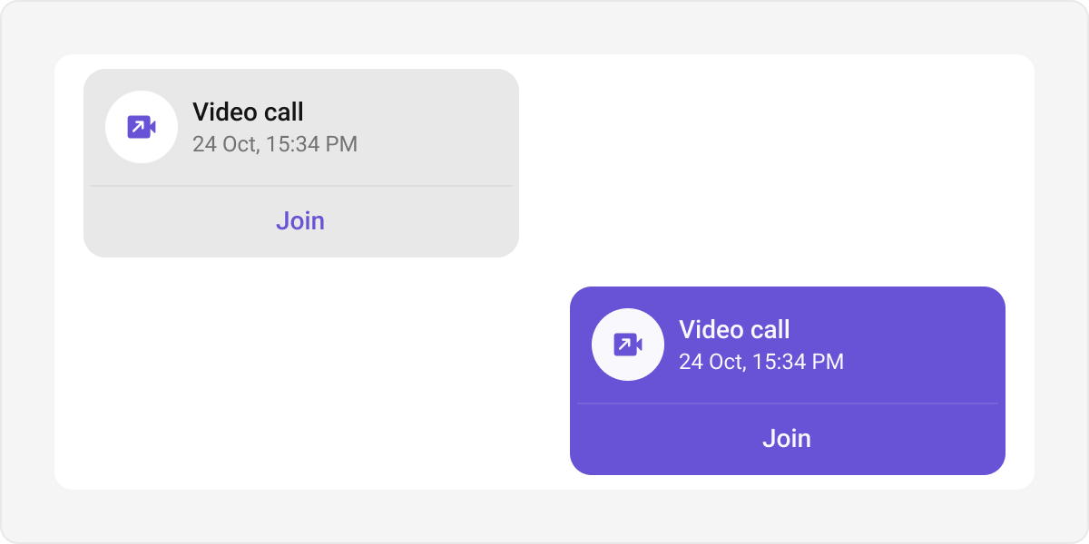 Meet call bubbles display call-related actions and statuses in the chat interface. Default