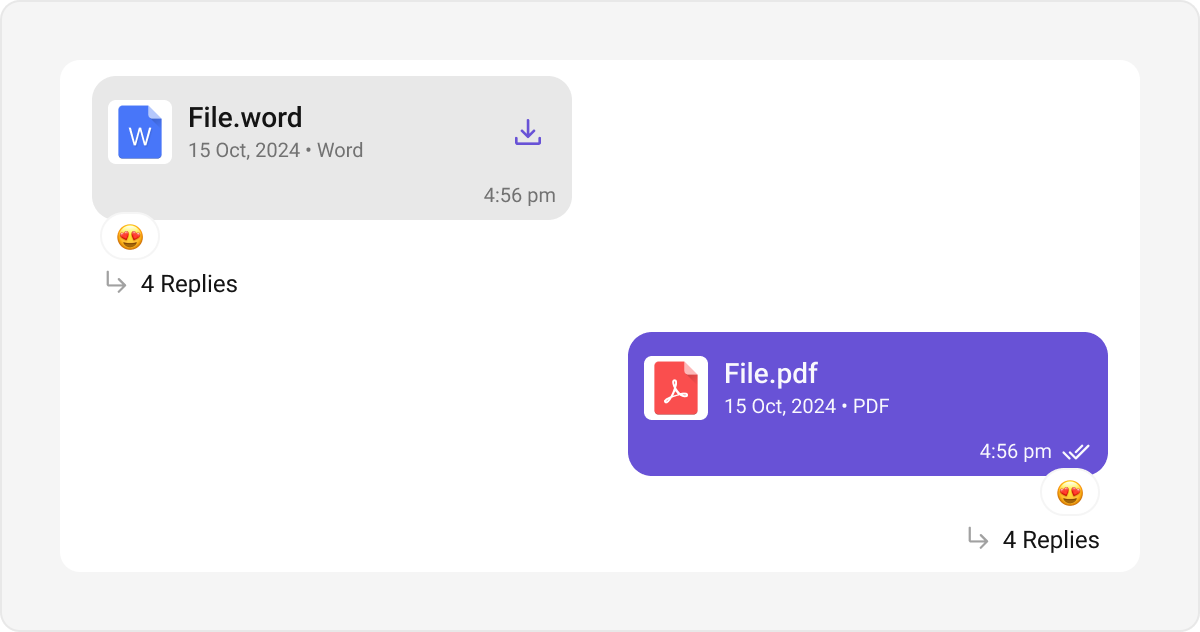 File bubbles are used to display shared files, such as documents, PDFs, or spreadsheets. Default