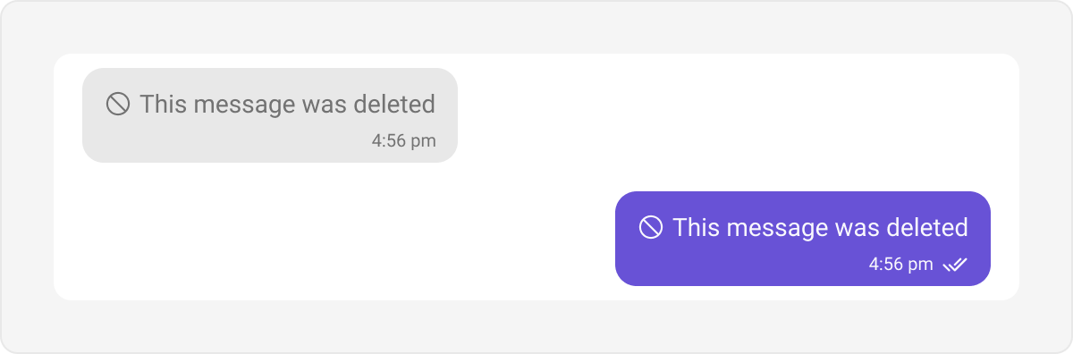 Delete bubbles are used to display messages that have been deleted by the sender. These indicate the message removal within the chat interface. Default